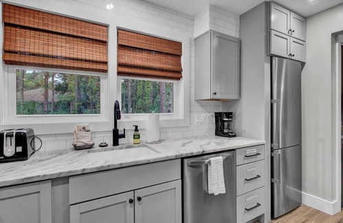 Finally, there are as many extras as seashells on the beach such as board games, labeled switches and knobs, full size stacked washer/dryer, new bedding, built in bunk beds, barn doors, and a new exterior.
