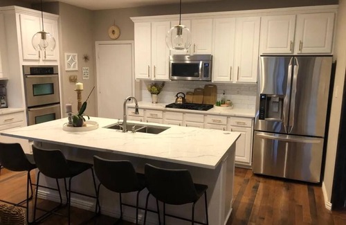 This 4-bedroom, 3.5-bath house in Little Elm is the perfect getaway. It's conveniently located less than 10 minutes from Lake Lewisville, PGA Frisco, The Cove Indoor Water Park, Little Elm Beach/Boat Ramp and Toyota Stadium.