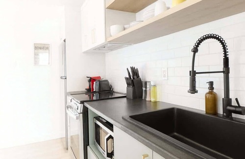 Welcome to Le Petit Bonheur de Limoilou! This bright and charming loft in Quebec City is perfect for a getaway. You'll find a comfortable bedroom, a fully equipped kitchen, and an inviting relaxation area. On-site amenities include free Wi-Fi, air conditioning, and private parking. Located near restaurants, shops, and Old Quebec, this accommodation combines comfort and a prime location to make your stay unforgettable.