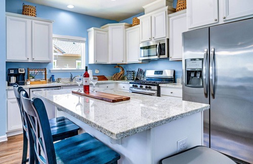 Step out the front door and onto the boardwalk, leading you straight to the sand and surf. Back at home, dive into the refreshing, heated community pool (complete with climate-controlled bathrooms and a playground for the little ones). In the mood for games night? Challenge your friends to a game of pool or foosball in the garage while enjoying a drink at the mini-bar, or catch the game on the 55-inch flatscreen. Feeling adventurous? Explore the 4-mile bike trail with our provided bikes and helmets.