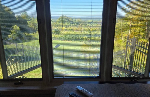 Walk directly out to the HUGE SWIMMING POOL AREA and PRIVATE POOL HOUSE (Seasonal). Free Wi-Fi and work remote in your own office! This space is quiet and perfect if you are on business travel! For sleeping there is a Queen size bed WITH AN ADJUSTABLE BASE and a Super Comfy Memory Foam Mattress. For working/reading/eating/watching TV there are two chairs with a desk Overlooking the Farmington Valley Views and Beautiful Sunsets at Night! A Fully Equipped Kitchen.