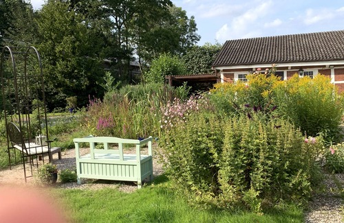 Relax in the garden (enjoy the outdoor furniture!) of this vacation home. As for the great indoors, you can come inside and enjoy the free WiFi and TV.