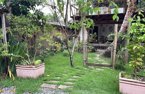 In the outdoor barbecue area with a wonderful lawn, hammocks on the porch, outdoor shower and parking for a car with high wall and electric fence. All this in a dead end street. A great option regarding cost and benefit.