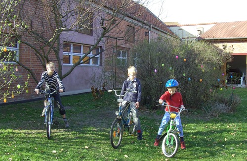 Our large former farmhouse has been restored as a monument and has been divided into holiday apartments. If you book our apartments 2 and 3 with this combination (apartment 7), you will live separately in one half of the house with the open door in the stairwell, so that you can use exits to the street or the courtyard. On the upper floor there is a 4-star apartment (DTV) for 2 people, on the ground floor (mezzanine floor) there is also an apartment for 3 people. As an extra bed on the ground floor (2nd Bedroom) the 90x200 bed can be turned into 2 low beds. In addition, in the 2nd Bedroom a cot 140 length available. On the upper floor there is a small desk for workoholics in the bedroom. The large enclosed courtyard offers many opportunities to relax on garden furniture, play ball games, practice on the children's bike, etc. Roddan is located in the Elbtalaue biosphere reserve with the opportunity to observe animals and plants, birds and natural beauties, to cycle in a flat landscape and to enjoy tranquility in the sparsely populated landscape. The Elbe is only 5 km away, Bad Wilsnack with spa treatments or the famous thermal baths can be reached in 8 or 9 km - and Havelberg with the cathedral, the Romanesque street, the Plattenburg, Wittenberge or Perleberg can be reached by car or bicycle. For rainy days (which are far too rare for the garden!) we recommend the thermal baths or a day trip to Berlin.