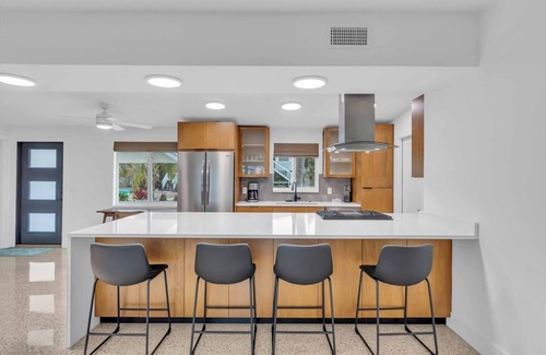 Enjoy vacation bliss at this completely remodeled island pool home called LivinGood! The house features the perfect blend of modern luxury and beachside charm.