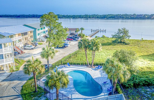 The best of both worlds -- Beach and Lake! This amazing - JUST RENOVATED - 2 Bedroom, 2 Bath condo is waterfront -- located directly on beautiful Lake Powell and Phillips Inlet in Pirate's Cove Inlet, providing instant access to the water from our onsite boat ramp. Got a boat or jet ski? Bring it with you! We are located on the West End of Panama City Beach, only a few minutes from Publix, Carillon Beach, 30A, many restaurants and Camp Helen. If you don't have a boat, you can rent a kayak or paddleboard at Camp Helen and have a great time on the lake. Would you rather be on the beach? Grab your beach gear and head to one of the nearby public beach access points, less than 5 minutes from our driveway. OR even better . . . boat to Phillips Inlet and then spend the day on the sand where the gulf and lake converge. Got kids? Swimming in Phillips Inlet is one of ours favorite things to do… feels like you are in the gulf without the danger of the undertow. Like to fish? There is great fishing in Lake Powell. Like to crab? The inlet is the perfect place to catch crabs. Feeling lazy? Spend the day relaxing by one of our two onsite pools, both of which have just been completely updated. This property offers a little bit of everything and is a perfect, quiet, family destination.