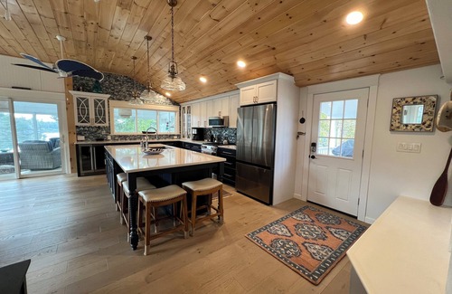Located on Rich Cove in Cundy's Harbor, Maine this newly remodeled stunner is the perfect spot for family and friends to vacation. Entering the home through the right side of the perfectly manicured walkway you will notice the homes brand new kitchen complete with new brand new appliances. With cathedral ceilings and it's open living, dining and kitchen area you have beautiful ocean views from most areas in the house. You may also notice each room has it's own heat pump so you will have heat for the chilly days and AC for those really warm days. Need the perfect spot to relax? The sunroom at Heron's Nest has 90 degree views of the water with brand new patio furniture that does not disappoint.