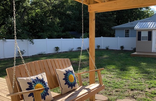 A cute single story bungalow that's quaint, comfortable and just 5 minute easy stroll to Downtown Cary. Academy Street is THE place to be! Super host with new listing and 5 star reviews - check out my other listings. The home is furnished with comfort and convenience in mind. Dog friendly with fenced in yard. Cary is a growing, little town in North Carolina. Only 20 minutes to RDU airport, Close to Colleges, PNC arena- for concerts and sporting events. Great central location! Stroll into DT Cary or simply relax on the swing seat in the private yard. Everything is provided for your comfort (lines, towels, washing products, trash bags, cloths, cleaning sprays, and more) There is a cute living room area , with smart TV, and a work station in a separate room if you are on a work trip! The area is residential and all my guests love the vibe of the home, near to the town and train station.