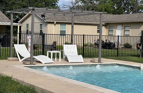 Lake Fork Getaways features fully air-conditioned, well-appointed units on a property that includes a saltwater pool, a Rec/Game Room (darts, pool table, board games, 75" Smart TV, espresso machine, air fryer, full fridge/freezer and seating for 25), a fully-fenced courtyard (multiple BBQs, picnic area, cornhole, axe throwing, exercise equipment, tranquility fountain, fire pit) and plenty of front-door parking to power up your boat, truck and/or RV (with six full RV hook-ups available upon request).