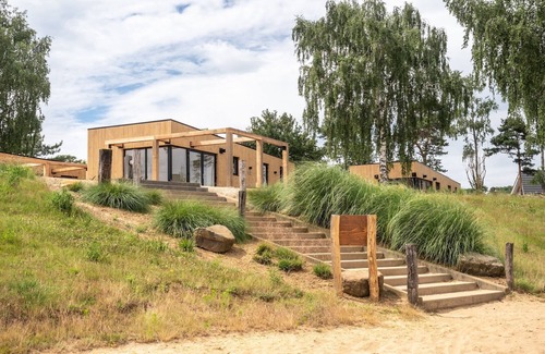 These luxury lodges are situated slightly higher, with a view over the beach and the water. Through the large windows, you can enjoy this view to its best advantage from inside the tastefully furnished (and air-conditioned) living room. It's not just the location that is high level, but also the comfort. The bedrooms have quality beds and the kitchen is fully equipped. The terrace is fitted out with garden furniture and is also accessible from the living room through the garden doors. At this holiday park, various types of accommodations, both pet-free and pet-friendly, can be rented in different comfort levels.