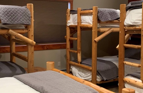 4 large bedrooms upstairs (1-queen 2 twin bunks, 1-queen 1twin bunk, 1-queen 2 twin bunks, last 1-queen 3 twin bunks) all with en-suite Bath, Main Floor 1 queen bed with separate bath, Kitchen, Dinning Room (5 tables), Pool Room, Washer/Dryer in 1/2 bath. Basement area Game Room with Video/Pinball, Ping Pong, Pool Table and