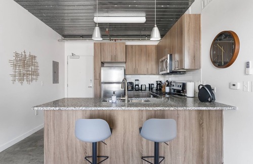 Lodgeur | Sizzling & slick 1BR loft | Midtown has 1 Bedroom , 1 Bathroom, and max occupancy of 2 people. The minimum rental for this property is 1 nights, but this can change depending on the season you plan on staying. Previous guests have given good rated it, and VRBO labeled it a top-rated Apartment because of the excellent services rendered by the owner or manager of this Apartment, and has consistently provided great experiences for their guests. Most families or guests that use it recommend it to their friends and some of them are repeat guests. Apartment has a friendly neighborhood, and the Midtown has interesting places to visit. If you want to learn more about the Apartment in Midtown, such as places to visit and things to do nearby, you can check below to learn more.