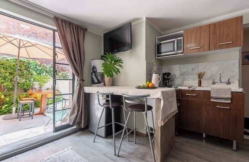 It is a very cozy small apartment, with independent entrance and total privacy; It is located at the back of a typical house of Colonia Condesa with an unparalleled garden, you can enjoy a quiet and charming stay, but with an excellent location not to miss the cafes, art galleries and environment that is part of the Magic that this beautiful neighborood has.