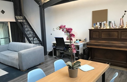 Located in the old brasserie "L’Amiteuse" and renovated in December 2018, the loft is very bright thanks to its bay window, the skylights of the roof and those of the bedroom.
