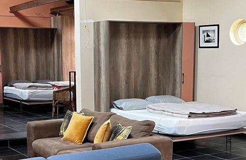 This stylish loft features 2 comfortable queen beds in a cozy room with kitchen and bathroom.
