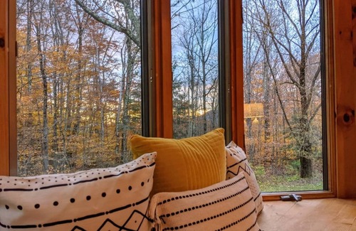 Our cabin is a tranquil and peaceful spot, tucked away on one acre in the Green Mountain National Forest. This modern log cabin offers 2,100 sq ft of space, comfortably accommodating 6-8 guests. The spacious open layout on the main level is perfect for groups and conversation, while the newly finished basement works great as a separate space to spread out and relax. We're just minutes from skiing at Bromley (5m), Stratton (20m), Magic (20m), and Okemo (35m). The HITS Vermont Summer Festival is also just 10 minutes away.