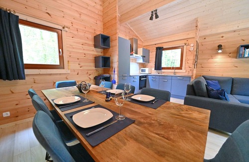 Escape to this recently built, stylish log cabin nestled at the edge of the peaceful Oignies Holiday Resort. Designed with natural charm and contemporary comfort, the cabin features a cozy living room with a wood-burning stove and cable TV—perfect for relaxing after a day outdoors. The fully equipped kitchen includes a coffee pod machine, oven, microwave, and dishwasher. With three bedrooms—including a double, a unique 3-person bunk bed, and a room with single and loft beds—the cabin comfortably hosts up to 6 adults and 2 children, making it ideal for families or groups. Surrounded by the lush woods of the Namur region, this holiday home offers tranquility and fresh air at your doorstep. Enjoy your morning coffee or a family barbecue on the private terrace, complete with garden furniture and a picnic table. With on-site parking and endless nearby nature trails, this location is perfect for hiking, biking, or simply unplugging in a peaceful forest setting. After a day of outdoor fun, treat yourself to the rich flavors of the Ardennes. Just a short drive away, you'll find rustic taverns and cozy restaurants serving Belgian favorites like slow-cooked stews, local cheeses, and artisanal beer. Prefer to dine in? Pick up fresh produce from nearby markets and enjoy a hearty home-cooked meal under the stars. The culinary charm of Namur is yours to explore.