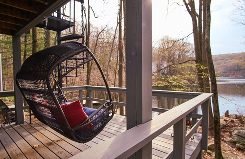 Quintessential Hudson Valley, just over an hour north of NYC, charming and peaceful renovated-1950s cabin with private lake dock and beach on beautiful Lake Dutchess. This non-motorboat, quiet, peaceful private lake is the perfect setting for the Fall foliage, Winter snowscapes, Spring blooms, and Summer swimming. Take a canoe ride (provided), fish (PLENTY of bass), a summer dip, or sled in the winter.