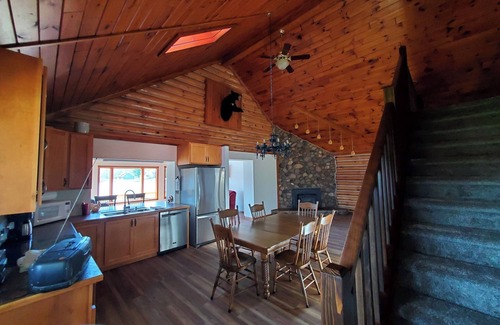 Experience Pickerel like a local in our newly remodeled log cabin. We are new to VRBO September 2025. At this time, we are offering huge introductory rates from fall of 2025 to spring of 2026. There is a master bedroom with a king bed on the first floor. Second floor large loft area has a queen and twin bed. Guests will find comfort and relaxation in this up north retreat. Enjoy the convenience of a washer and dryer, dishwasher, gas grill, fire pit, nice patio on a large lot. Experience what Pickerel has to offer with a stay at our cabin. The cabin is located on the channel that leads into Arbutus Lake. There is a dock on the shoreline of the property from there you can access the lake by boat or kayaks. Swimming on the shoreline of the property is not good as the bottom is silty. The sandbar and main lake are nearby accessible by boat or kayak. The snowmobile trail is right in front of the cabin and easily accessible from the property. there is nearby coffee shop, pickle ball, golf, taverns, restaurants, and more.