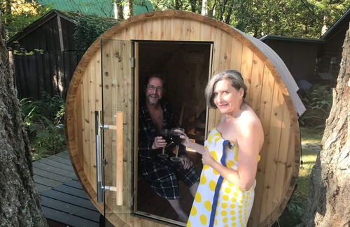 Log cabin, private, hottub, sauna, spa, gardens, featured in national magazine is located in Marmot. Log cabin, private, hottub, sauna, spa, gardens, featured in national magazine provides accommodation, featuring Air Conditioner, TV, View, among other amenities. This Cabin features Air Conditioner, TV, View, to make your stay a comfortable one.