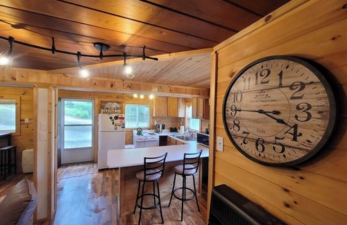 Experience a cozy Fall escape at Lincoln Log Lodge on Sisson Lake in Bitely while exploring the numerous trails, National Forests and lakes in the Bitely and Baldwin area. Located in a small quiet neighborhood with only one neighbor on the east side of the property. Lodge includes 2 bedrooms and a pull-out couch in the living area with a memory foam mattress for extra guests. Come enjoy the large yard for games, the quiet of the woods, and did I mention the lake? Truly the best of a cabin and a cottage at this location. Take our kayaks out on the quiet lake, take a swim, relax in the sun, or prepare a meal in the kitchen. Play games like MS PACMAN and GALAGA on the arcade game. This space was made to share with family and friends and live big outdoors! Dog fee is $75. There is a 2 dog maximum.