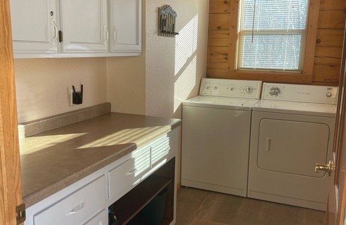 Spacious open concept style cabin that comfortably sleeps 12. Two private bedrooms with queen beds, a kids room with 2 bunk beds and loft with three queens. Fully equipped kitchen and laundry room for your convenience.