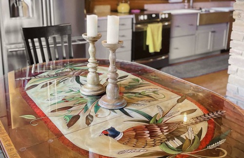 - Double sided woodburning fireplace to stay warm on chilly nights (don’t worry we also have central heat and AC)