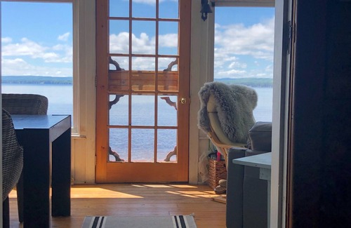 -Large enclosed sunporch close to shoreline with dining area (seats 8) and sitting areas under a vaulted ceiling