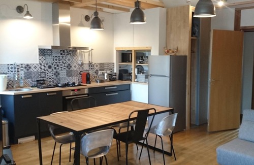 In an old barn renovated respecting the original materials, duplex of 45 m2: a living room, an open kitchen, a loft bedroom isolated. Great comfort and sustainable development (low consumption and solar water heater)