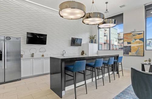 Inside, you'll find a beautiful kitchen with Whirlpool stainless steel appliances and granite countertops. For relaxation, enjoy lounging by our pool and spa, which features a complementing sun deck, BBQ grills, and a fire table for outdoor entertainment.