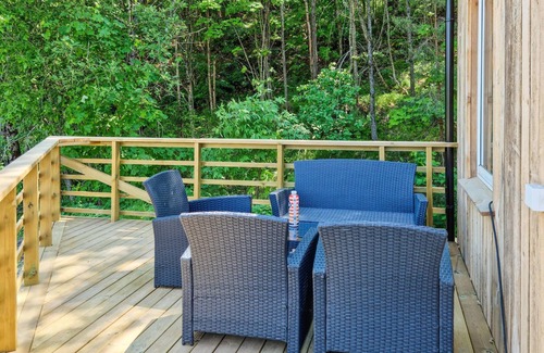 The modern vacation home welcomes you in a beautiful natural landscape on a quiet property directly by the fjord. In the bright, homely rooms you can make yourself comfortable together. The comfortable sofa invites you to relax after your activities. Enjoy meals together without hustle and bustle and gather the whole family for fun game nights at the dining table.