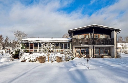 Here we are talking about a large vacation home which offers you a very characteristic interior. Here you will find a living room with library feeling and fireplace, eye-catching interior and all together a charming extraordinary interior. The large winter garden also invites you to long evenings throughout the year. For the final relaxation you also have access to a sauna.