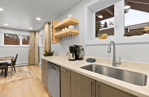 There is plenty of off-street, FREE parking. A covered walkway from the parking area protects guests from most elements and allows for access to the downstairs unit. Upon entering the foyer, you will head down 7 steps to access your space. Don’t let the “downstairs” aspect scare you. This unit has been newly remodeled, outfitted with recessed and dimmable LED lighting throughout, and plenty of windows to let the outside in. Depending on the season, you may prefer a little darkness. In the summer months, “the land of the midnight sun” might be a little confusing for some, so each bedroom is equipped with shades AND blackout curtains to ensure a good night's rest. The home is equipped with automated locks for ease of entry and security.