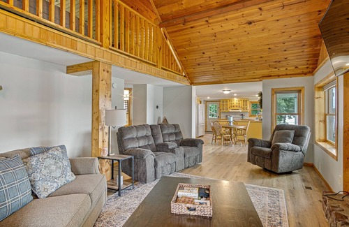Great cabin for families, perfect for a weekend getaway or lengthy stay. Located on a quiet channel connecting the premier area lakes of Island, Chain, McCann, and Clear Lakes. Wake up to the loons calling right off your own private dock. At night, enjoy the peaceful sounds of nature and the crackle of a camp fire in the lakeside fire pit. The cabin offers convenient access to excellent fishing, close proximity to hiking, biking, ATV, snowmobile and cross country ski trails, and nearby downhill skiing at Christie Mountain. The chain of lakes host several lake front restaurants and bars that are well renowned in the area. Wood is provided with your stay. Kayak and canoe are also provided for guests. Pontoon for rent upon request. Please reach out for pricing details.
