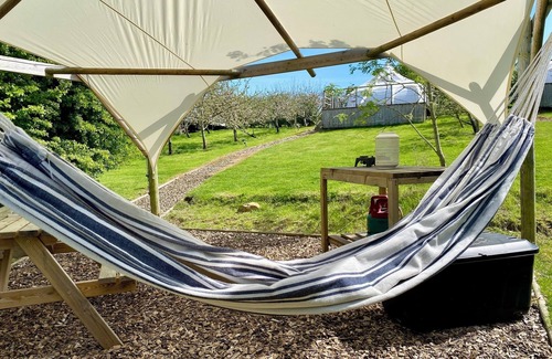 Stunning Lotus Belle tent with your own private deck and individual garden area complete with BBQ, hammock and picnic bench. Book 3 nights or more nights for discounted rates.