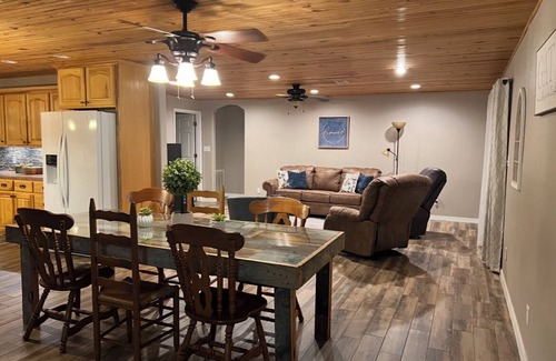 Located in Subiaco, enjoy what this 2-bedroom house has to offer. With 2 queen beds, jetted bathtub, and a cozy living room with a sofa bed, guests can unwind in this fabulous and soothing retreat. Have coffee on the back porch listening to the bells of Subiaco Academy. You can park your vehicle here and ride your SXS to trails directly from here or even to the lodge at Mt. Magazine State Park. Make your holiday one for the books with a stay at our place.