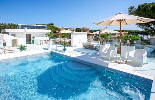 Come to Pineto and enjoy a dream vacation in this beautiful vacation apartment. Designed in bright colors and selected materials, the accommodation is a wonderful setting for your relaxation. Cook together and meet on your balcony to eat and end the evening. In addition to the apartment, you also have access to the roof terrace, which adds to the luxury. Look forward to quality garden furniture, a beautiful view of the surroundings and the sea and take a dip in the pool.