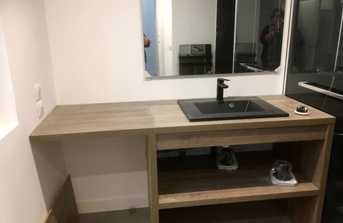 The apartment is completely renovated with taste. It includes an entrance, a living room with sofa bed, a kitchen bar open to the living room with high-end household appliances, a very comfortable bedroom with a large dressing room, a bathroom with very large walk-in shower and Separate WC.