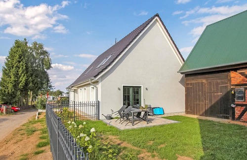 The two holiday apartments are located separately in a holiday home on a 1500 sqm property in the Paske district, just a few steps from the harbour on Lake Usedom. The centre of Usedom (town) is therefore only about 500 m away on foot. The house was extensively renovated from 2018 to 2019 and the apartments were furnished to a high standard. The property is completely fenced.