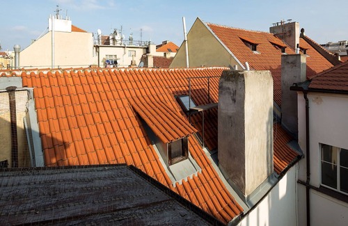 Great attic apartment downtown on the top floor with spectacular views of Prague castle, Old Town rooftops and Petrin hill. Elevator newly installed in February 2020 for your comfort. The apartment has two bedrooms, one with kingsize bed and one with single bed, with additional common room with fully equipped kitchen. This attic apartment was featured in several magazines due to its fantastic location and views.