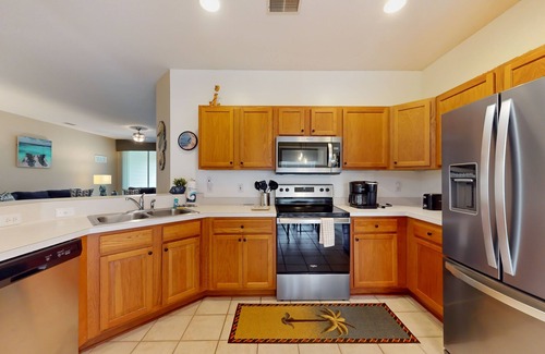Everything you need for a fun and successful vacation is right at your fingertips! The light and airy décor will give you that coastal feel as you delight in the comfort of the ceiling fans. The chef of your group will appreciate the fully equipped kitchen with all stainless steel appliances for whipping up meals and snacks. After a day of fun in the sun, you can unwind on the screened-in porch with your favorite beach read.