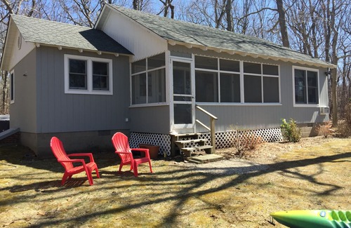 Peaceful pondfront cottage with two bedrooms , 1 1/2 baths, pull out couch in Living room can sleep two more , and lovely screened in front porch to enjoy the beautiful pond view-watch ospreys fly over, or enjoy the pond by using kayaks, paddle boats or canoe that comes with the rental. 10 minute walk to beautiful sound beach around the corner-minutes to wineries, Southold village, and Greenport.