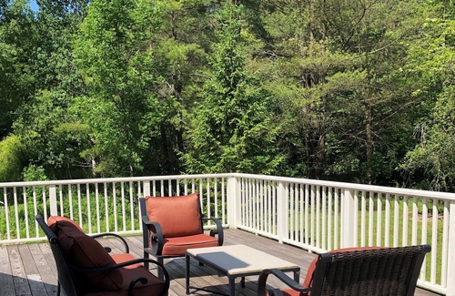 The bathrooms are spacious and feature walk in tiled showers. Then there are the amazing porches!! The favorite spot of everyone is the screened in porch that runs the entire length of the back of the cottage. It is comfortable and the setting is completely surrounded by nature. There is even a hawk that has made her nest in the top of a tree near the house!! She has been there for a couple of years. There is a deck off of the upstairs bedroom that is a great place to star gaze on a warm night. The washer and dryer completes the efforts of the owner to make this a true home away from home.