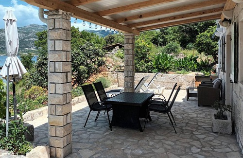 Spend a magical Mediterranean holiday in this small stone house, almost directly by the sea. This simple, Mediterranean-style holiday home is located on the island of Korula, in a quiet and idyllic bay that invites you to relax and unwind. The small pebble beach is just a few steps away and you can spend many hours outdoors on the large terrace with panoramic views. The power supply is provided exclusively by solar panels, so electricity consumption is limited. An approx. 150 m long footpath leads to the car park. You can hire a boat from the owner for an extra charge.