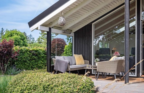 On the gentle, Danish Baltic coast you and your family will find this beautiful and well-equipped vacation home. The interior is open all the way to the gable, which creates a spacious, pleasant atmosphere. The living area with several window fronts offers various corners where you can relax while looking out into the garden.