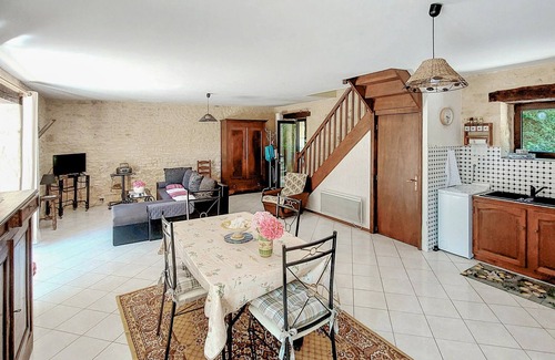 Imagine entering this pretty stone house in the picturesque Périgord Noir. The cosy atmosphere immediately welcomes you; bright, friendly rooms and comfortable furniture invite you to relax. Enjoy the open-plan kitchen, which is equipped with modern appliances and offers an inviting dining area, ideal for your social evenings. The lovely details and soft lighting create a cosy atmosphere.
