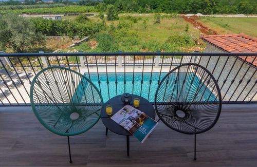 This beautiful property has a lovely private pool, an outdoor jacuzzi and a sauna - everything you need for a relaxing vacation! Relax on the sun loungers next to the pool or enjoy freshly prepared meals from the barbecue in the outdoor dining area. Villa Lume will delight you with its tastefully furnished interior. On the first floor there is an open space divided into a fully equipped kitchen with dining area and a spacious living room. On the first floor there is also a beautifully decorated bedroom with an en-suite bathroom and a walk-in closet. The remaining three bedrooms and bathrooms are on the upper floor. All bedrooms are air-conditioned and have TVs. The beautiful view of the pool and the Istrian surroundings awaits you on the balcony and terrace on the upper floor of the villa. Book Villa Lume and spend an unforgettable vacation near Porec Located in the quiet part of Porec, but only a short drive from the city center, this villa is ideal both for those who prefer a relaxing vacation and for those who like the hustle and bustle of tourist towns. In Porec you will find all kinds of activities, restaurants, bars and clubs. As Porec used to be a Roman colony, the city is especially known for its rich cultural heritage. The breathtaking Euphrasian Basilica, under UNESCO protection, is the best proof of how glorious the history of Porec was. Medieval towns of Motovun and Groznjan as well as the coastal towns of Rovinj and Versar are only a short drive away from the villa. If you are interested in more distant parts of Istria, the Brijuni Islands and the Roman amphitheater in Pula are easily accessible from this region.