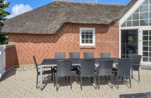 This very spacious holiday home is located in the centre of Klegod. It is very charming with its thatched roof and offers a cosy atmosphere for 12 people in the living room/kitchen, six bedrooms, two bathrooms, swimming pool, whirlpool and sauna. Outside, you can make yourself comfortable on the west-facing terrace, which is surrounded by a wall. The lawn also invites you to spend some time relaxing, or playing ball games. The popular holiday area of Klegod is located on the Holmsland Klit headland, between Søndervig and Hvide Sande. Søndervig is a lively holiday resort in summer with a good range of shops and restaurants. There is bowling, mini golf, bike hire, a grocery shop and playgrounds in the town. Every year, international artists create sand sculptures on the beach. Visit a restaurant in the village, enjoy an ice cream in the shade, play golf on the golf course Søndervig is suitable for a holiday of both relaxation and activity. In Hvide Sande you have the opportunity to take part in a fish auction or go water skiing on the lift. Lyngvig Fyr lighthouse offers a good view of the sea and Ringkøbing Fjord.