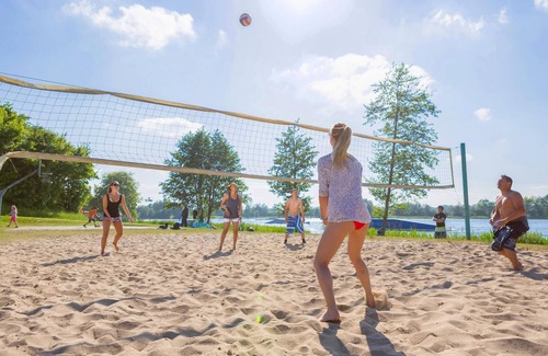 The holiday village offers leisure activities for the whole family. Stumble straight from your holiday home to the beautiful beach in your swimming gear or hire a SUP to paddle around the lake. The water ski and wakeboard facilities at Lake Rumpelsee provide plenty of action. Here you can (for a fee) take your first waterskiing steps as a beginner or perfect your techniques and jumps like a real pro. A children's playground, beach volleyball court and hiking trails round off the offer.