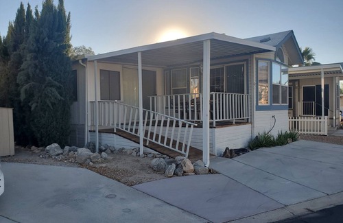 La Casita is a lovely Vacation Rental with Central Heat and Air. It is located between Morongo Spa and Casino and beautiful Palm Springs, both are aproximately 30 min away. Most Guests stay at the Resort that has 13 Healing Mineral Pools and Spas that are naturally heated, each to a different temperature. There are 2 Clubhouses. La Casita is across the street from the East Clubhouse that has a Family Pool and Spas and an Adult Pool and Spa. There are separate Male and Female locker room areas with dry saunas and showers. There are courts for Shuffleboard, Pickleball and Tennis as well as a Fitness Center, Laundry Rooms, Library and Game Rooms. If you leave the Resort there are great locations nearby including the Living Desert Zoo, Spas, Casinos, Restaurants and more.